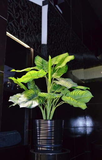 Czarna i połyskliwa doniczka doda wnętrzu wytwornych nut,