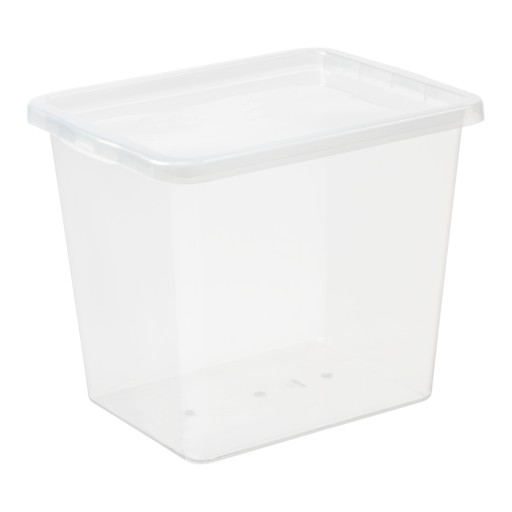 Basic to seria przezroczystych pojemników do przechowywania, których zawartość jest widoczna zarówno z boku jak i od góry. Pokrywa zamykana przez delikatne kliknięcie. Pudełka można ustawiać jedno na drugim w stabilny i bezpieczny sposób. Zaokrąglone rogi zapewniają bezpieczeństwo podczas użytkowania. Dostępne w wielu rozmiarach, od 1,7– 80L.