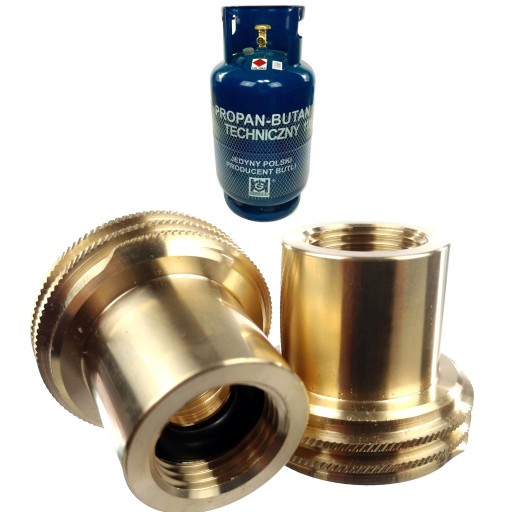 Przejściówka z jednej strony zakończona jest gwintem pod zawór butli 11 kg, z drugiej strony zakończona jest wejściem pod pistolet lpg stosowany w krajach, przy których w tabelce występuje oznaczenie ACME.