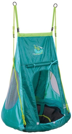 - namiot wykonany z poliestru, z obustronnym wejściem - zwijaną zasłonką zapinaną na rzep, namiot można odpiąć i korzystać tylko z samej huśtawki bocianie gniazdo