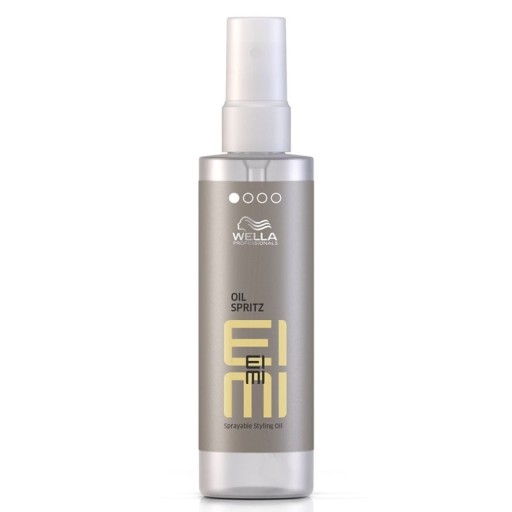 Wella Professionals EIMI Oil Spritz to płynny, łatwy do rozpylania olejek stylizacyjny, który pozwala uzyskać delikatny poziom utrwalenia. Równomiernie i lekko się rozprowadza, błyskawicznie nadaje włosom połysk i chroni je przed promieniowaniem UV. Ułatwiając układanie włosów, Oil Spritz zapewnia doskonałe wykończenie fryzury. Działa antystatycznie i można go używać także jako produktu wspomagającego strzyżenie.