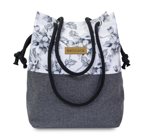 Torebka posiada grube bawełniane sznury z możliwością regulacji. Istnieje możliwość wymiany sznurka na czarny bądź zakup dodatkowego kompletu.