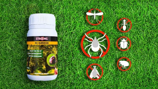 STRONG NA KLESZCZE polecany jest szczególnie do zwalczania takich gatunków pasożytów, jak: kleszcz pospolity (Ixodes ricinus), kleszcz łąkowy (Dermacentor reticulatus), obrzeżek gołębień (Argas reflexus), kleszcz gryzoni (Ixodes trianguliceps), kleszcz jeżowy (Ixodes hexagonus), kleszcz psi (Rhipicephalus sanguineus) i obrzeżek polski (Argas polonicus). Oprysk na kleszcze skutecznie eliminuje również gatunki owadów latających, takich jak komary tygrysie, muchy, omacnica spichrzanka oraz owady biegające, takie jak karaluchy, mrówki czy trojszyki.
