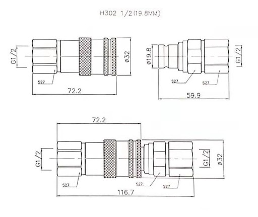 Szybkozłącze suchoodcinające BSP 1/2" gniazdo