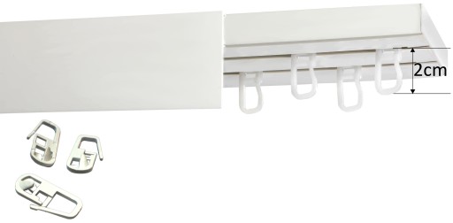 - Szerokość szyny i rozmieszczenie torów zapobiega nachodzeniu zasłon na siebie, zapewniając płynne przesuwanie zasłon