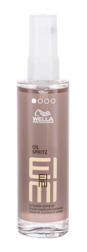Wella Professionals EIMI Oil Spritz to płynny, łatwy do rozpylania olejek stylizacyjny, który pozwala uzyskać delikatny poziom utrwalenia. Równomiernie i lekko się rozprowadza, błyskawicznie nadaje włosom połysk i chroni je przed promieniowaniem UV. Ułatwiając układanie włosów, Oil Spritz zapewnia doskonałe wykończenie fryzury. Działa antystatycznie i można go używać także jako produktu wspomagającego strzyżenie.