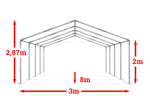 Палатка коммерческого склада для гаража 3x8 м 2-2,87 м
