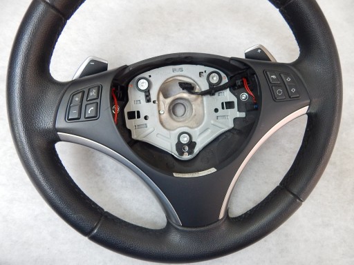 Ładna oryginalna skórzana kierownica multifunkcyjna z łopatkami do samochodu marki BMW E81, E82, E84, E87, E88, E90, E91, E92