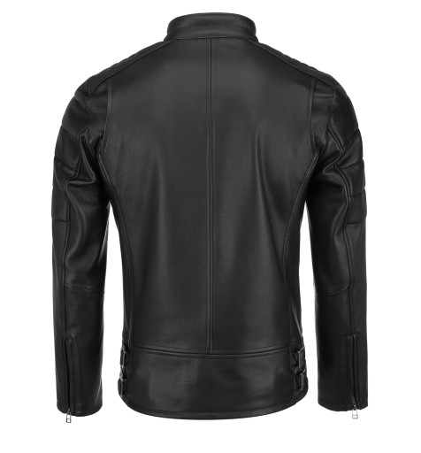 Ta bestsellerowa męska kurtka skórzana Agustin łączy elegancję z solidnym wykonaniem. Wykonana z najwyższej jakości naturalnej włoskiej skóry jagnięcej, gwarantuje wysoki komfort noszenia i trwałość. Czarny kolor dodaje klasy, a mocne przeszycia na ramionach i rękawach, wzbogacone dodatkową pianką, nadają jej motocyklowego charakteru. Usztywniana stójka oraz ozdobne klamerki na bokach kurtki podkreślają jej styl. Posiada aż 4 kieszenie zewnętrzne oraz trzy kieszenie wewnątrz, które bez trudu pomieszczą portfel, telefon i dokumenty. Wyprodukowana w Polsce.