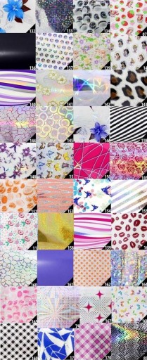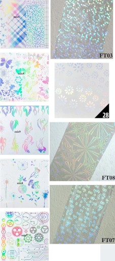 wszystkie folie są transferowe = do odcisku = do odbijania na zelu, hybrydzie lub kleju (na kleju do folii wychodzi najlepiej) wzory, ktore sa przezroczyste nazywamy z angielskiego transparentnymi