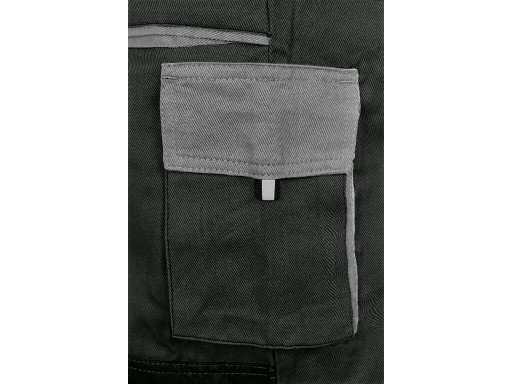 Wysokiej jakości, spodnie robocze wykonane w 100% z bawełny o gramaturze 260 g/m2. Spodnie posiadają dwie duże naszyte kieszenie boczne, tylną kieszeń krytą patką zapinaną na rzep, oraz dodatkowe kieszonki na miarkę i komórkę. Na kolanach naszyte wzmocnienia z dodatkowej warstwy materiału. W tylnej części pasa elastyczna guma zapewniająca komfort użytkowania.