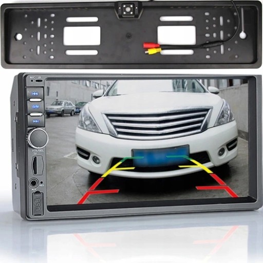 RADIO SAMOCHODOWE BLUETOOTH 2DIN 7" USB + kamera cofania w ramce tablicy rejestracyjnej