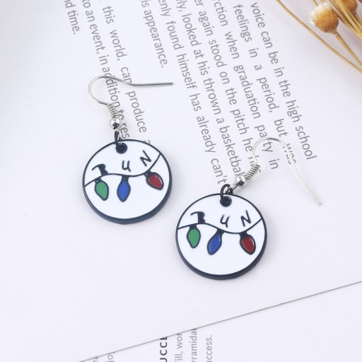 Kolczyki Run w stylu serii Stranger Things. Kolczyki wykonane są z metalu w kolorze czarnym, średnica zawieszki ok. 2cm, bigle otwarte.