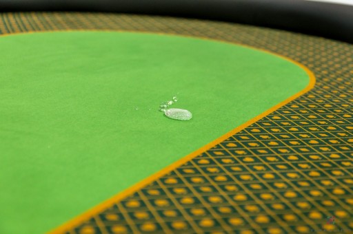 Stosujemy sukno drukowane w pełnym kolorze, gdzie wszystko łącznie z kolorem sukna jest nadrukowane. Tu nie ma ograniczeń i jesteśmy w stanie wszystko wydrukować. Zastosowana jest miękka, aksamitna w dotyku tkanina, która strukturą przypomina plusz. Zewnętrzna, milimetrowa powłoczka powoduje, że materiał delikatnie cieniuje podczas użytkowania. Sukno doskonale się prezentuje na stołach do pokera i innych gier kasynowych. Dodatkowo zostało pokryte warstwą, która ogranicza wchłanianie płynów oraz ułatwia czyszczenie.