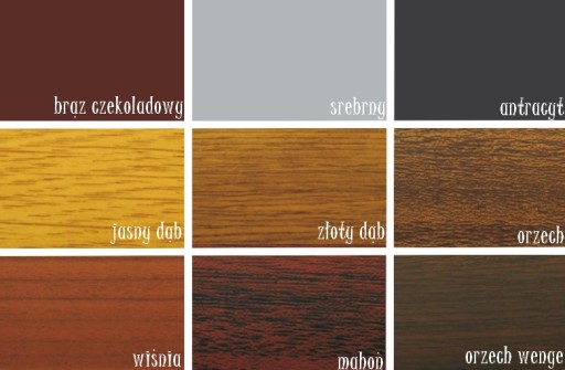 Poza białym kolorem kasety oraz prowadnic, dostępne są również inne kolory (poniżej).