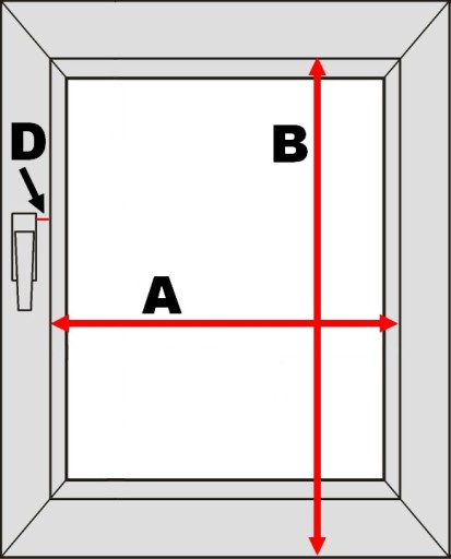 D - odległość między klamką, a listwą przyszybową (wymiar ten jest potrzebny w momencie, gdy listwa przyszybowa nie jest prostokątna i nie ma możliwości przyklejenia do listwy prowadnic).