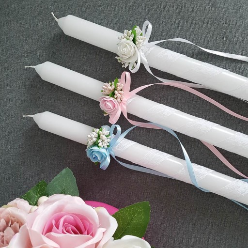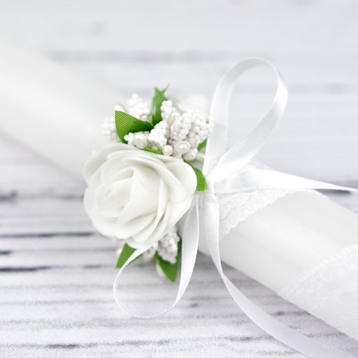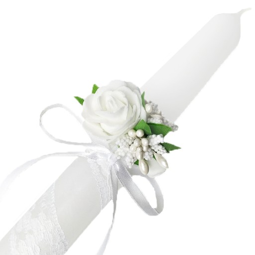 Świeca do CHRZTU, KOMUNII - BIAŁY BUKIECIK