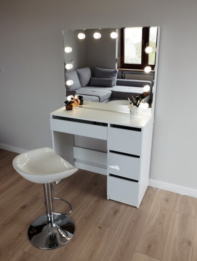 ➡️ Do zestawu dołączona jest szczegółowa instrukcja montażu biurka, panel z lustrem dostarczamy w całości - wystarczy tylko wkręcić żarówki (w zestawie).