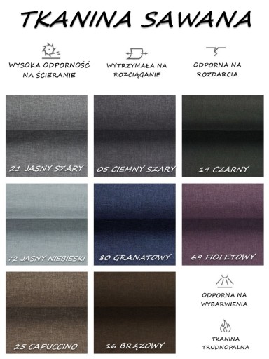 Możliwość wyboru indywidualnej kolorystyki z tkanin poniżej - wymagana przedpłata lub wpłata zadatku. Eko skóra stosowana tylko na boki i skrzynię.