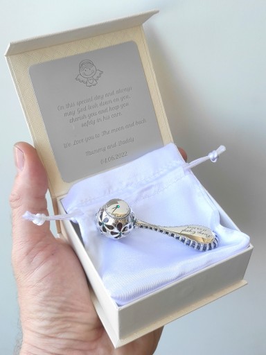 серебряная погремушка подарок на крещение + гравировка
