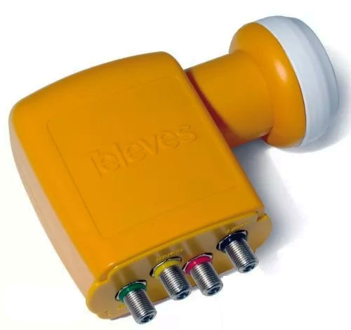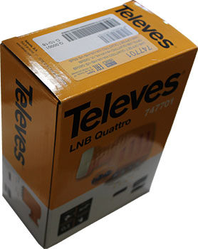 Wysokiej jakości konwerter satelitarny typu Quatro Televes 747701 przeznaczony do instalacji z multiswitchem.