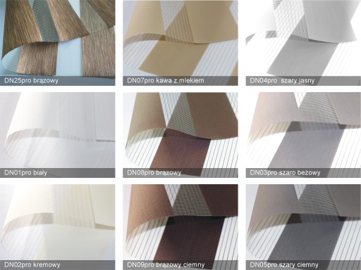 - Na tej aukcji proponujemy rolety z materiału dzień noc w pasy. Tkaniny dzień noc zapewniają płynną regulację dopływu światła. Nie trzeba zwijać całej roletki aby wyjrzeć przez okno.