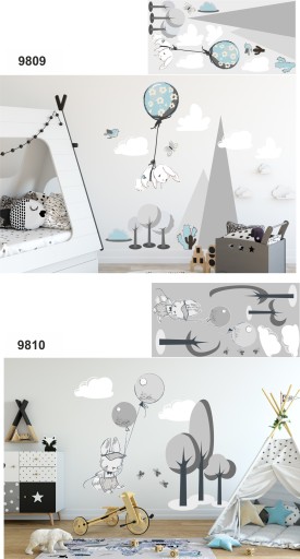 Naklejki dla dzieci na ścianę króliki balony góry
