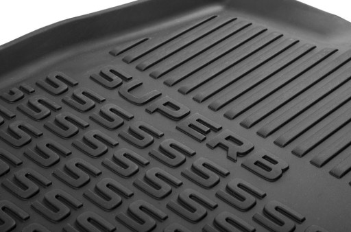 Przednie wkładane maty są wykonane z wysokiej jakości tworzywa TPE specjalnie dla ŠKODA Superb. Są przydatne, szczególnie w sezonie zimowym, gdy wnętrze samochodu cierpi najbardziej. Dzięki ich dokładnemu kształtowi całkowicie wypełniają kształt pod stopami pasażera. Wyposażone w podpis SUPERB, przednie maty są przymocowane do podłogi za pomocą klipsów mocujących, które mocują je na swoim miejscu. Wyłapują brudu i wilgoci, a ich powierzchnia jest łatwa do czyszczenia i nie śliska. Główną zaletą tych maty jest ich podniesiona krawędź, która zapobiega wydostaniu się brudu z mat, a także z zatrzymaniem wody (np. Rozmrożonego śniegu). Dzięki podwyższonej krawędzi mata może być łatwo usunięta z samochodu bez zabrudzenia środka auta.. Trwała i odporna mechanicznie mata jest łatwa do czyszczenia przy użyciu zwykłych środków myjących. Podczas wymiany maty konieczne jest usunięcie starych maty, a następnie włożenie nowych. Nie wolno układać maty na siebie.