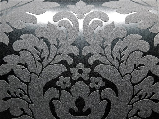 Piękna bogata tapeta. Matowe wypukłe ornamenty o strukturze weluru na błyszczącym satynowym tle. Niezwykły efekt kontrastów na ścianie.