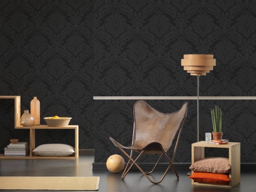 ЧЕРНЫЕ СОВРЕМЕННЫЕ МОЮЩИЕСЯ ОБОИ ПЛОТНЫЕ ОБОИ С ОРНАМЕНТОМ