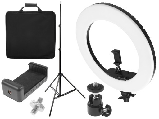 Lampa pierścieniowa LED 48W ze ściemniaczem i regulacją temperatury ze statywem