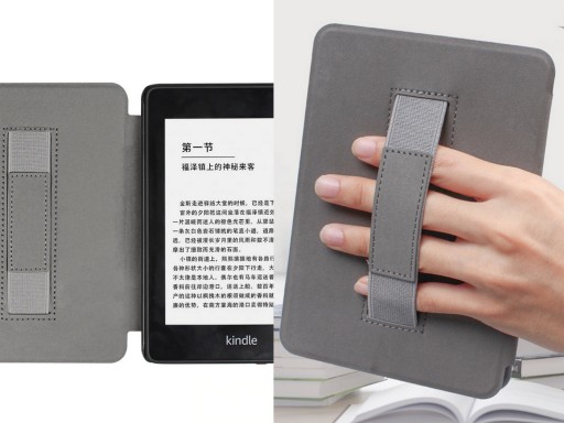 - ma uchwyt na rękę pozwalający bezpiecznie trzymać Kindle podczas czytania.