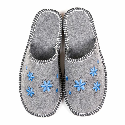 Klapki damskie wykonane zostały z wysokiej jakości materiałów, z dbałością o każdy szczegół. Wierzch oraz wkładkę stanowi ekologiczny filc, który posiada właściwości higroskopijne - stopy zachowują ciepło i nie pocą się.