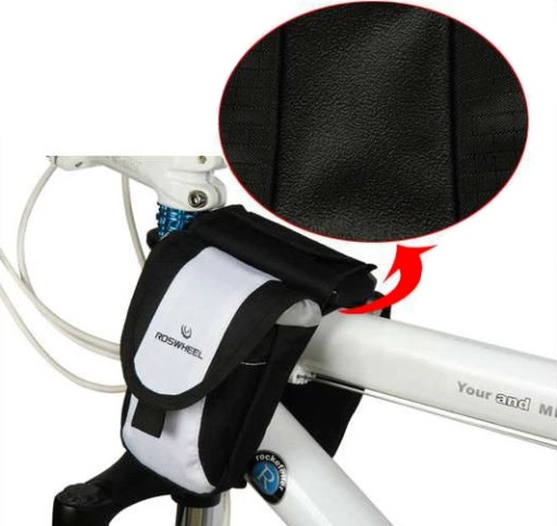 Torba zapinana jest w dwóch miejscach - z przodu do kierownicy paskiem z odblaskiem, dzięki któremu będziesz jeszcze lepiej widoczny na drodze oraz pod spodem paskiem z regulowaną długością, dzięki czemu przypniesz go do różnych rozmiarów ramy!