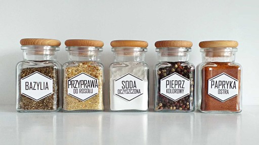 Naklejki takie zdecydowanie ułatwią szybkie odnajdywanie przypraw w czasie gotowania.