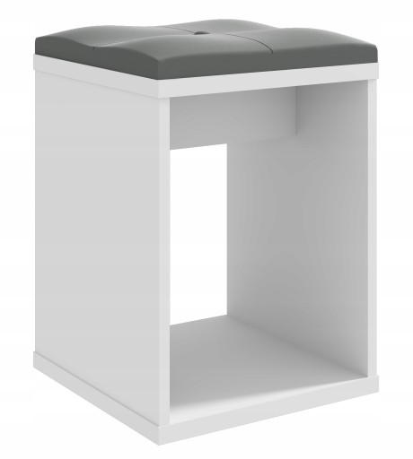Jest on wygodny - siedzisko pokryte jest miekką pianką i obszyte materiałem w kolorze szarym. Na środku taboretu umieściliśmy elegancki guzik, podnoszący jego walory estetyczne.