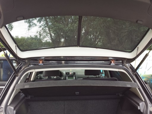 - 2 zasłonek na klapę bagażnika (ze względu na kształt zabudowy szyby od wewnętrznej strony klapy nie da się tu zamontować jednej dużej zasłony)