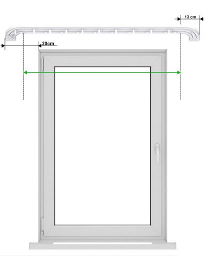 W celu doboru odpowiedniej długości szyny, zaleca się aby była ona szersza od wnęki okiennej minimum o 40 cm (20 cm na każdą stronę)