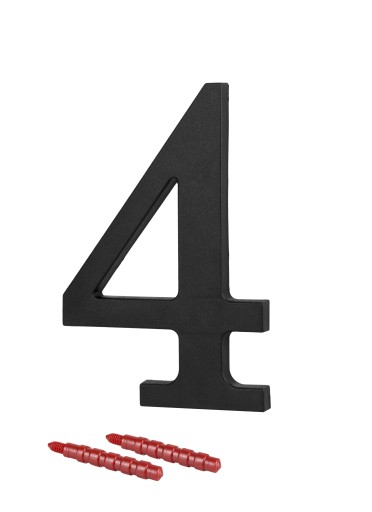 Cyfry przygotowane do powieszenia na elewacji budynku lub innej płaskiej powierzchni przy użyciu załączonych kołków montażowych lub silikonu. Cyfry wykonano z wysokiej jakości tworzywa odpornego na zmienne warunki atmosferyczne.