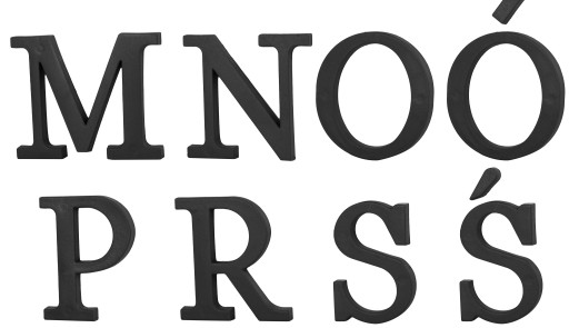 W kolorze czarnym i brązowym dostępny jest cały alfabet wraz z ogonkami (z wyjątkiem Litery X oraz Q)