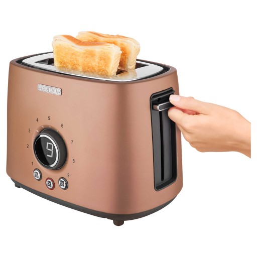 - Funkcja automatycznego wyśrodkowania umożliwiająca równomierne opiekanie grubych i cienkich tostów
