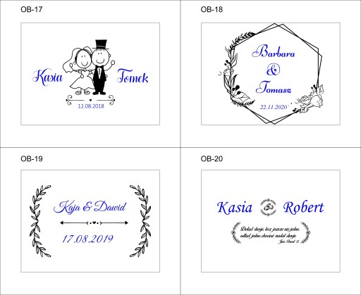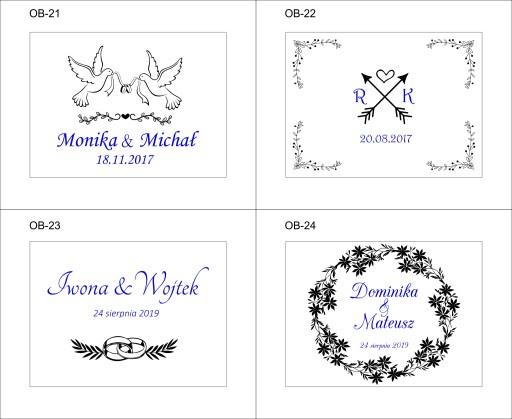 Przy finalizacji zakupu prosimy podać w wiadomości dla sprzedającego numer projektu oraz własny tekst (imiona, data, dedykacja) zaznaczony na szablonie niebieską czcionką.