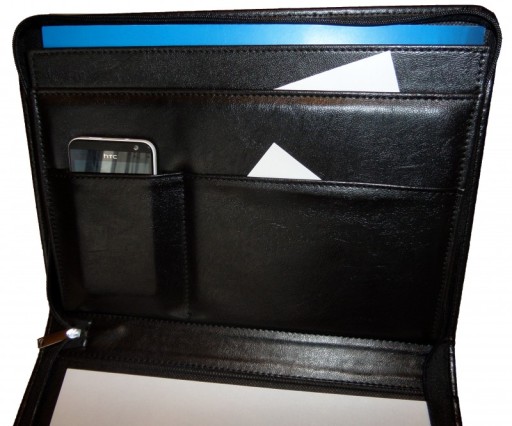 Aktówka posiada kieszonkę na kalkulator lub telefon, oraz uchwyt na długopis.