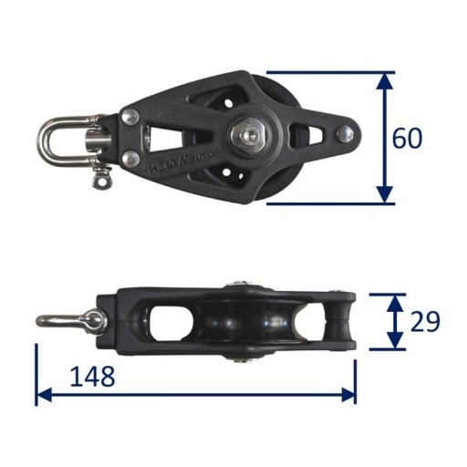 BLOK POJEDYŃCZY z ZACZEPEM 60mm z SZEKLĄ i KRĘTLIKIEM.