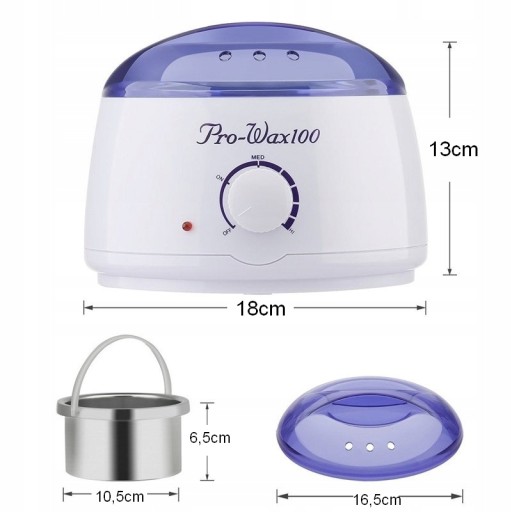 Podgrzewacz do wosku w puszce. Posiada regulację temperatury podgrzania. Dzięki swojej technologii szybko rozgrzewa wosk i utrzymuje go w stałej temperaturze. W zestawie: podgrzewacz, przewód zasilający oraz instrukcja obsługi.