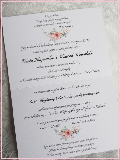 - wymiary zaproszenia złożonego ok. 15,3 cm na 11 cm