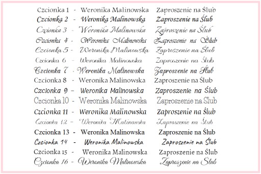 - numer czcionki do wewnątrz zaproszenia (można przysłać własną czcionkę)