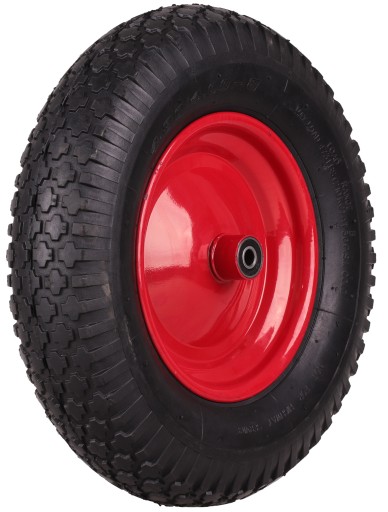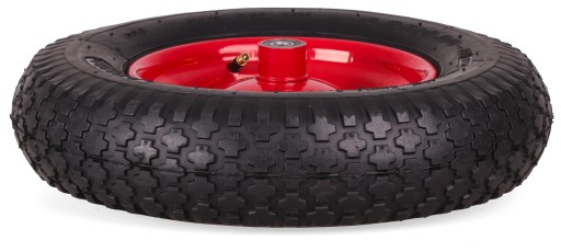 Koło do taczki o maksymalnym obciążeniu do 136 kg. Wytrzymała metalowa felga malowana proszkowo zapewnia podwyższoną stabilność. Całość wykonana z wysokiej jakości materiałów. Bieżnik z wzorkiem, idealny do nawierzchni: