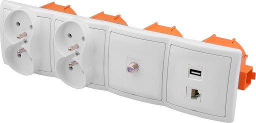 Wysokiej jakości gniazda telewizyjne, internetowe, USB oraz gniazdo zasilające w puszcze podtynkowej pozwoli ukryć każdy przewód w ścianie nadając Twojemu wnętrzu eleganckiego wyglądu. Obudowa koloru białego została wykonana z wytrzymałego i trwałego tworzywa.
