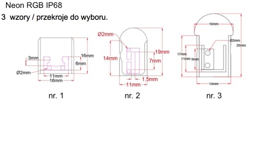 Dane techniczne neonu led RGB 11 x 19 IP68 Polimer.;